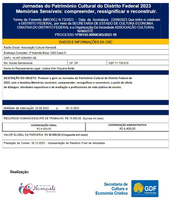 JORNADAS DO PATRIMÔNIO CULTURAL DO DISTRITO FEDERAL 2023