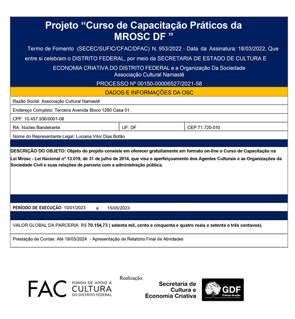 CURSO DE CAPACITAÇÃO PRÁTICOS DA MROSC DF