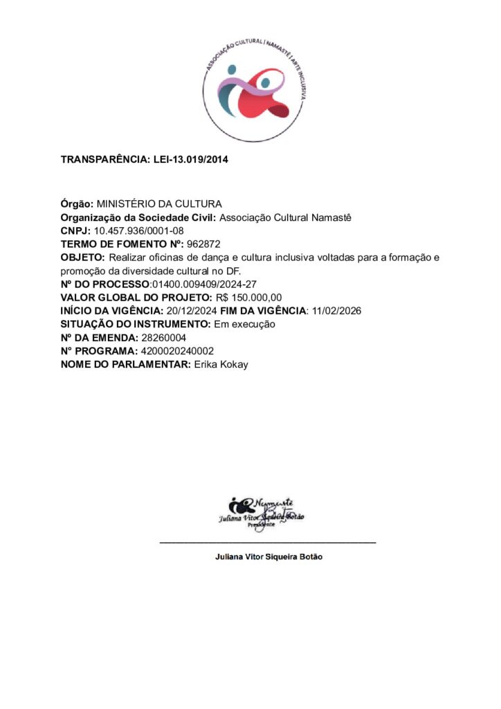 PROJETO ESPETÁCULO DE DANÇA INCLUSIVA